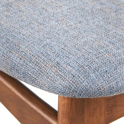 Create an exceptional dining experience with the Mid-Century inspired 7Pc Wave Extendable Dining Table from Buylateral. The unique self-stored butterfly extension leaf, at 15.5 inches, easily extends the table length from 59 inches to 74.5 inches long. The table is designed with an eye-catching grain pattern, rounded corners, and angled legs. Six upholstered chairs with blue-gray fabric that resembles the softness and texture of linen, feature padded seats for added comfort. Chair and table legs are constructed of solid rubberwood with a durable MDF and veneer tabletop in a walnut finish.