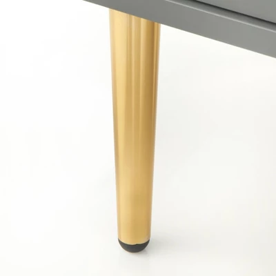 Channel your inner Mid-century style with the need to have Tabaria TV Stand by Lifestorey. A distinctive grooved pattern is etched on the front door panels lending a vintage type of vibe. Ideal space not only for your TV but also for housing A/V media pieces, along with additional room for storing streaming devices, video games, movies and more. Two back side grommet holes allow for easy cord management for all your equipment. Constructed of durable MDF in a neutral gray finish, this cabinet is tastefully accented with gold-tone metal handles and legs. Can accommodate up to 55” TV’s.